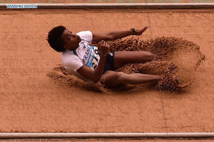 Gold Medalist Yanis Esmeralda David of France competes in the Women’s Triple Jump of athletics event at the Nanjing 2014 Youth Olympic Games in Nanjing, capital of east China's Jiangsu Province, Aug. 25, 2014. (Xinhua/Ou Dongqu)