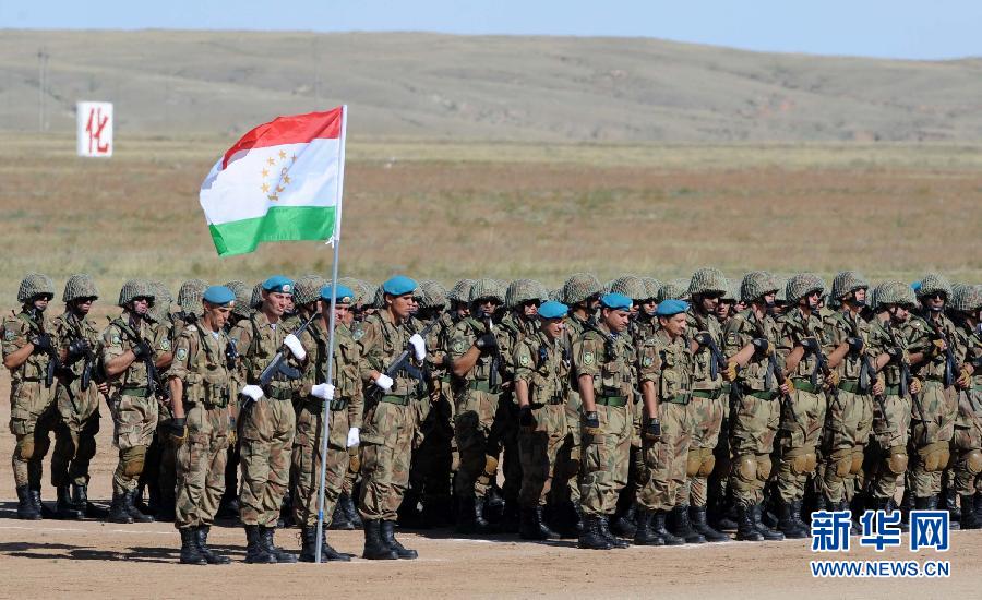 Participating troops from Tajikistan present parade for the opening ceremony of the “Peace Mission -2014” on August 24, 2014. (Xinhua News Agency/Zhang Ling)
