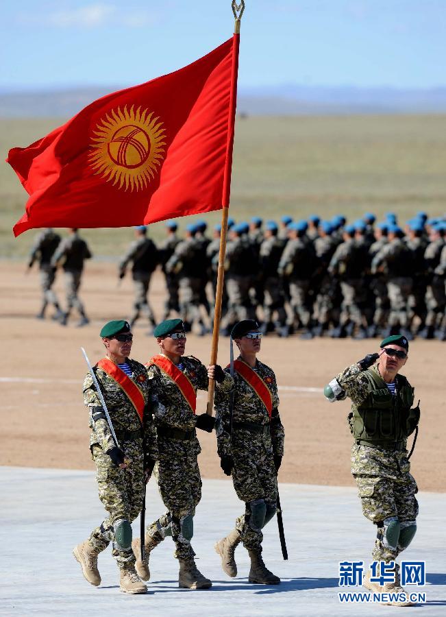Participating troops from Kyrgyzstan present parade for the opening ceremony of the “Peace Mission -2014” on August 24, 2014. (Xinhua News Agency/Zhang Ling)