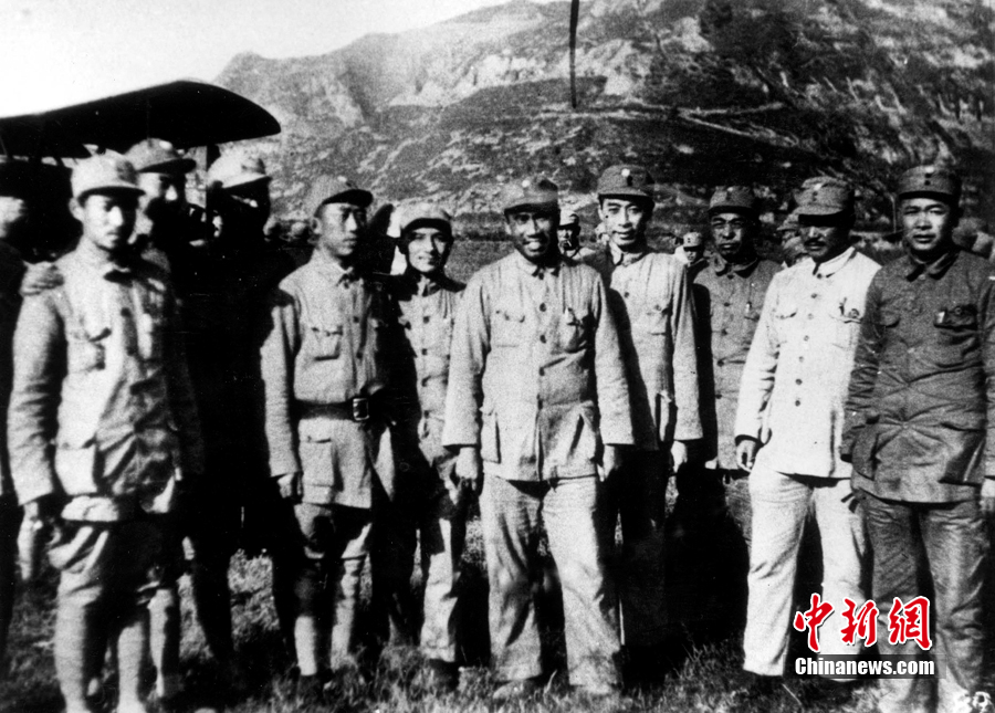 Deng Xiaoping (fifth from left), Zhu De, Zhou Enlai, Peng Dehuai, He Long and other leaders in 1938. (Photo/CNS)