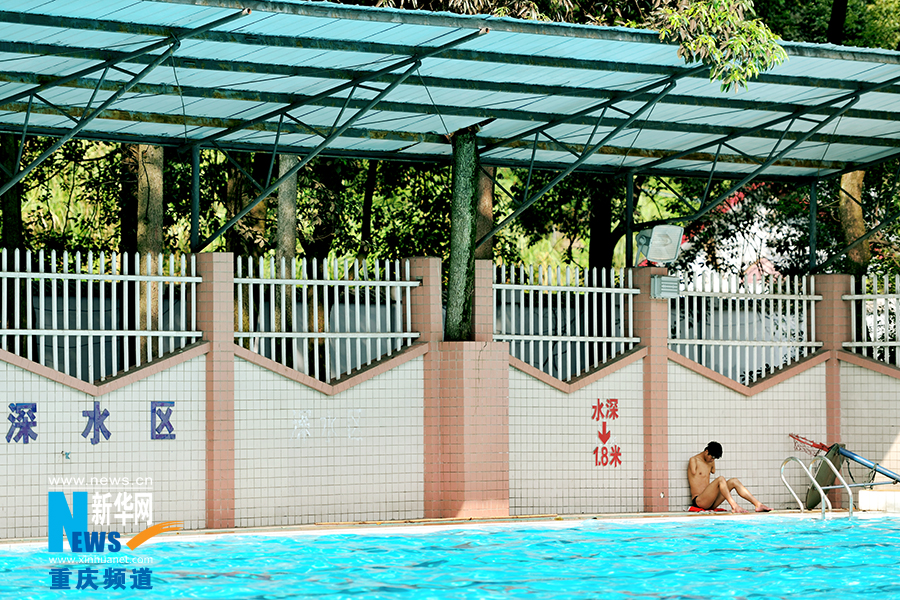 Wang Hu takes a break during the hard training. (Photo/Xinhua)
