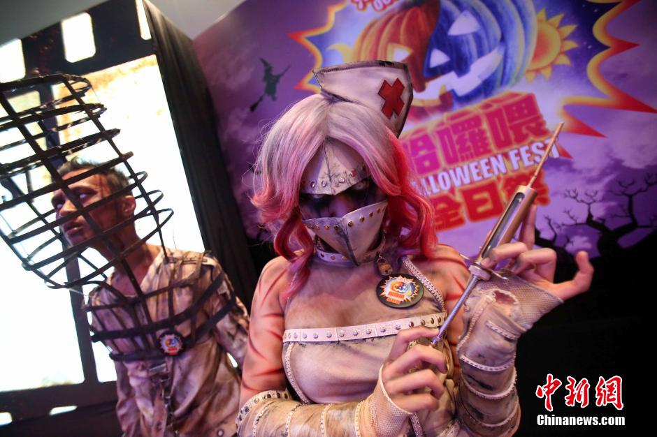 Hong Kong Ocean Park's Halloween Fest 2014 will be opened on Nov. 2, 2014. This year the Fest adds Houses and over a dozen Halloween Bash shows exhibiting some of the best in the fright industry for some heavy-duty horror. You can go there to experience the terrifying Halloween. (Chinanews.com/Hong Shaokui)
