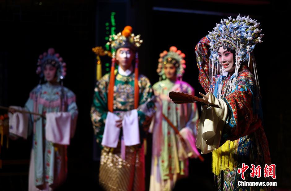 Beijing opera artists perform the Drunken Beauty, Aug. 24, 2014. (China News Service/ Yang Bo)