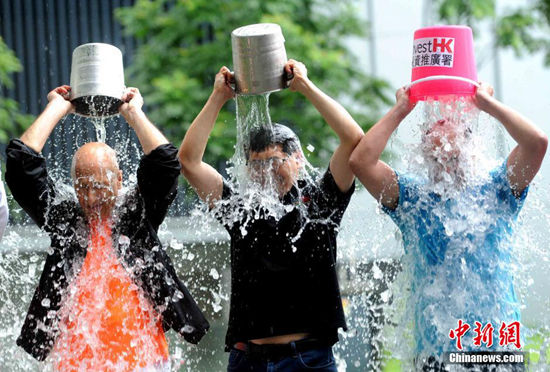 Hong Kong government officers accept the "ice bucket challenge."(Photo/Chinanews)