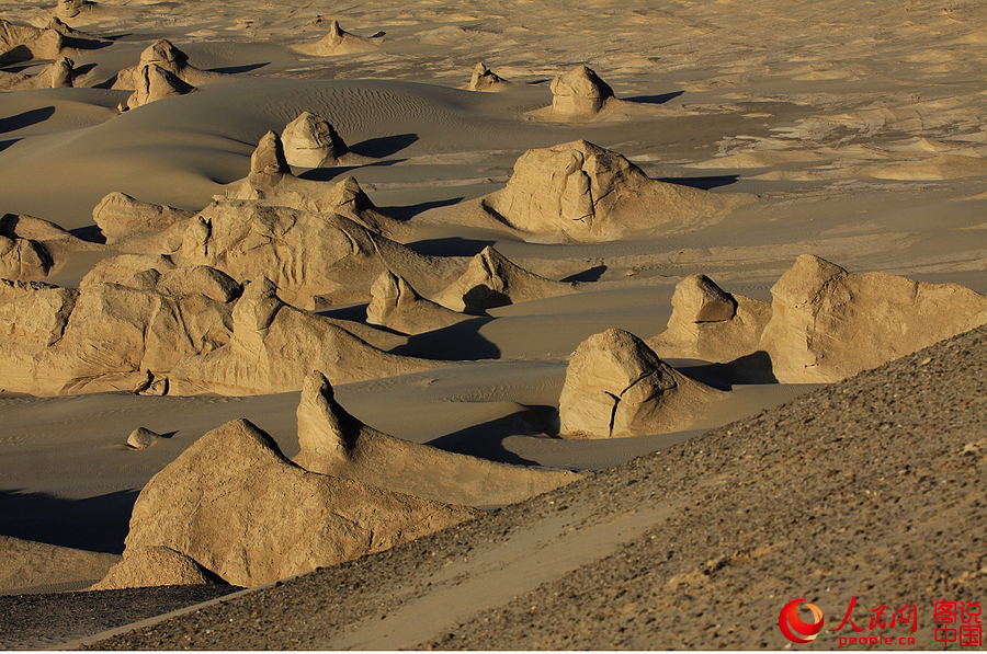 A yardang is a streamlined hill carved from bedrock or any consolidated or semi consolidated material by the dual action of wind abrasion, dust and sand, and deflation. Depending upon the winds and the composition of the weakly indurated deposits of silt and sand from which they are carved, yardangs may form very unusual shapes. (Photo/People's Daily Online)
