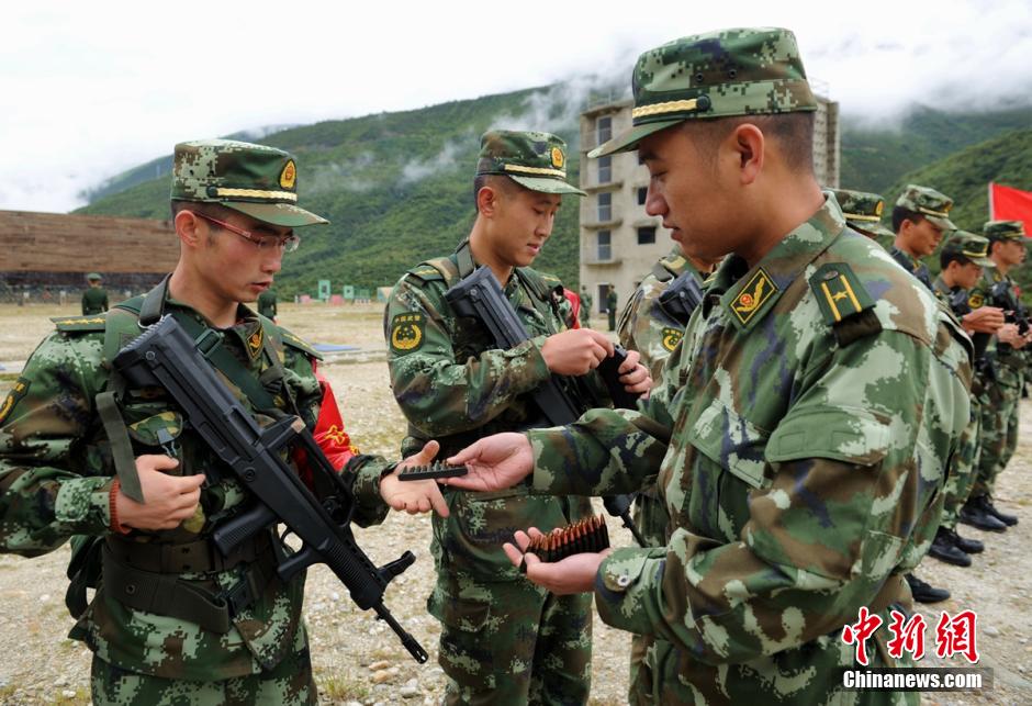 An officer distributes ammunition to the armed police. (CNS/Liu Zhongjun)