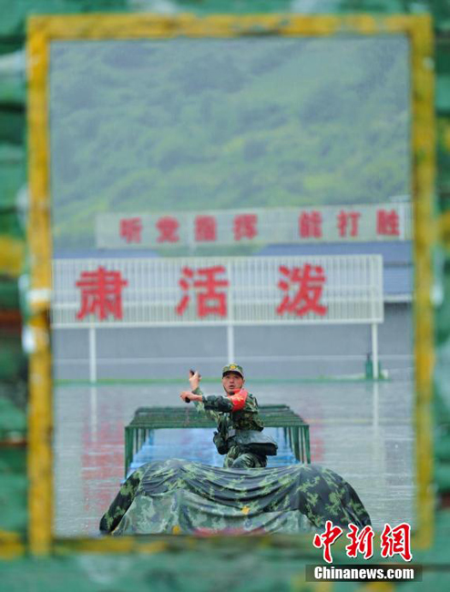 Armed police compete in tactical riot flare throwing. (CNS/Liu Zhongjun)