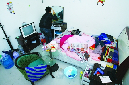| A member of the "ant tribe" lives in a 10 square meters apartment. (Photo/Xinhua) |