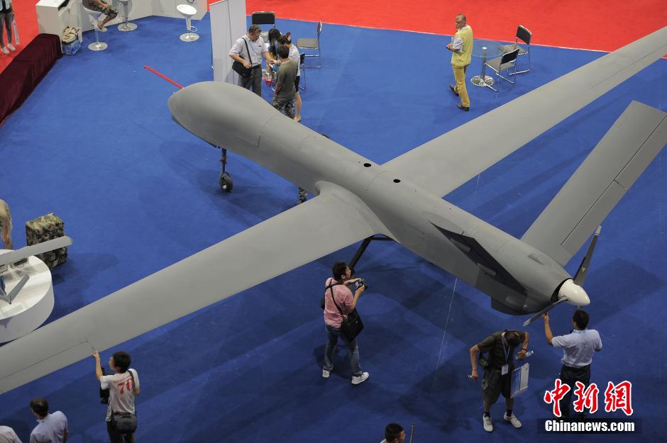 2014 International drones and model aircraft technology and equipment exhibition kicks off in north China's Tianjin on Aug. 29, 2014. More than 70 enterprises from home and abroad specializing in drone research and manufacture participate in the exhibition with advanced products including GPS, telecommunication products etc. This exhibition aims to establish an all-around communication platform and to promote integrated military and civilian development. (CNS/Tong Yu)