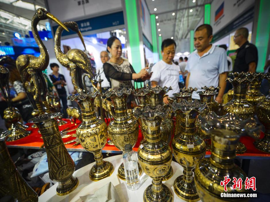 Bronze wares from Pakistan at the expo, Sept. 2, 2014. (Chinanews/Liu Xin)