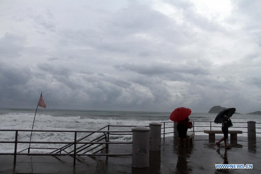 People look the high waves caused by hurricane "Norbert", in the boardwalk of Mazatlan Port, in Sinaloa State, northwest Mexico, on Sept. 4, 2014. Hurricane "Norbert" will continue causing heavy rains in northwest and western Mexico, although it has not landed the country, the National Weather Service reported. (Xinhua/Juan Perez)