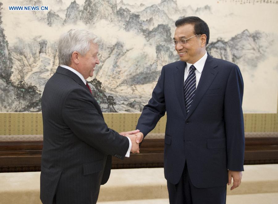 | Chinese Premier Li Keqiang (R) meets with Deputy Prime Minister of Belarus Anatoliy Tozik in Beijing, China, Sept. 4, 2014. Tozik is here for the first meeting of the intergovernmental committee of cooperation between the two countries. (Xinhua/Xie Huanchi) |
