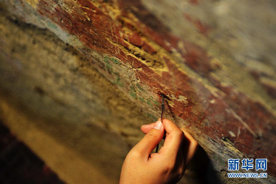 To protect the cultural relics in Mogao Grottoes in Dunhuang, preservationists and researchers have been "examining and healing" the frescoes and other relics since the establishment of Dunhuang Protection Agency in 1944. Till now, more than 5,000 square meters of fresco and 280 grottoes have been repaired.