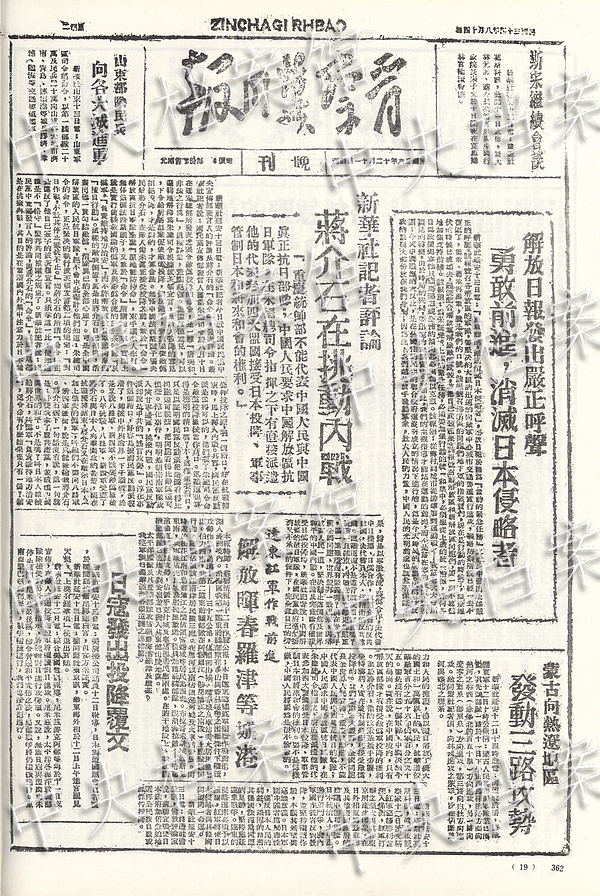 On August 25, the CPC central committee issued a declaration on the current political situation. The CPC central committee asked the Kuomingtang to designate the areas in which the Eighth Route Army, the New Fourth Army and the anti-Japanese column in south China can accept the surrender of Japan. All these requests were vetoed by the Kuomingtang government.
