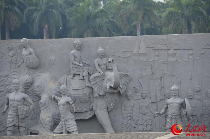 The relief around the monument records treasure voyages. (People's Daily Online/Du Mingming)