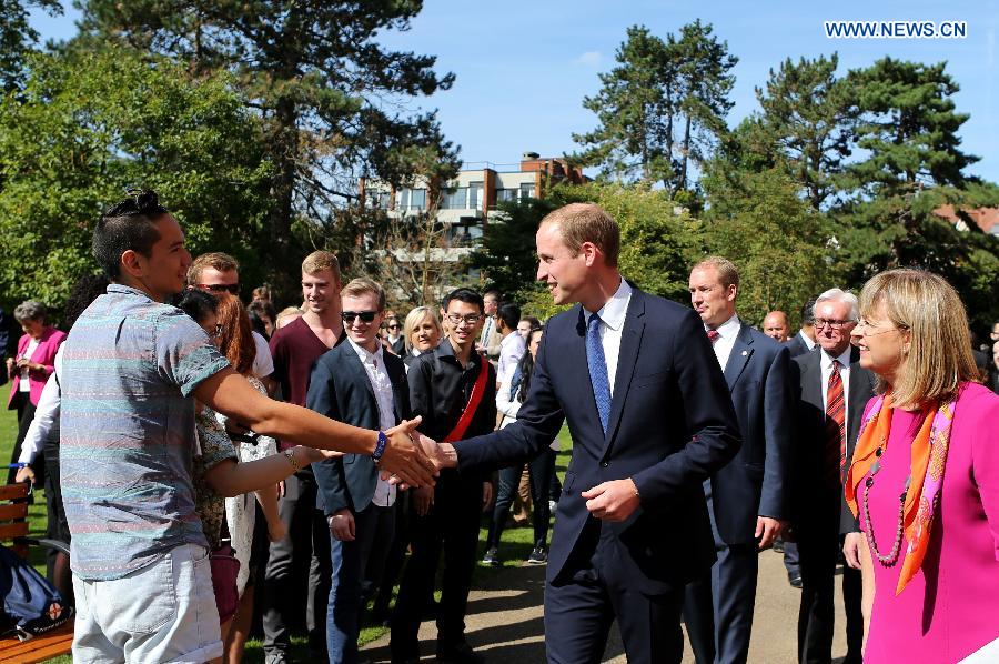 Prince William (C), Duke of Cambridge, greets well-wishers as he arrives to formally inaugurate the Dickson Poon University of Oxford China Centre Building in Oxford, the United Kingdom, on Sept. 8, 2014. Prince William unveiled the Dickson Poon University of Oxford China Centre here on Monday. (Xinhua/Han Yan)