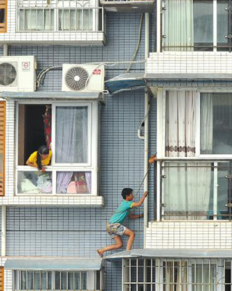 Kai climbs back toward safety. (Photo Source: wccdaily.com.cn)