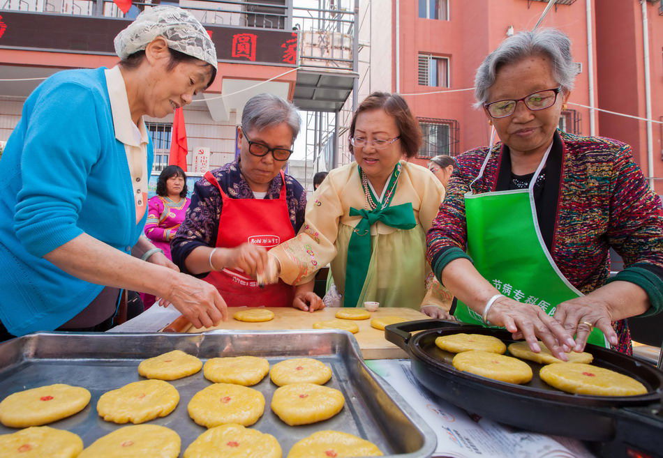 The residents of Yuquanjie community of Hohhot make moon cakes. (Xinhua/Ding Genhou)
