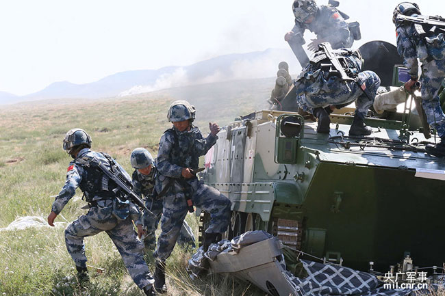 Chinese airborne combatants ready to launch attack on terrorists in Peace Mission 2014, a joint anti-terror military drill conducted by forces of the Shanghai Cooperation Organization (SCO) countries. (Photo/mil.cnr.cn)