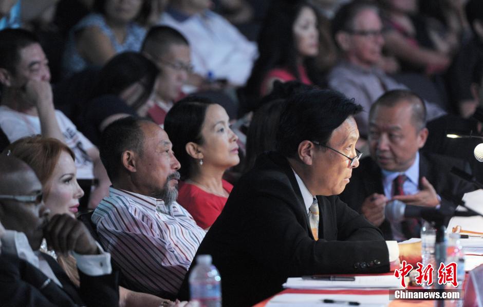 The judge group consists of Chinese celebrities Tang Guoqiang, Sun Haiying, Lu Liping, and American musician Jerry Bell. (Chinanews/Mao Jianjun)