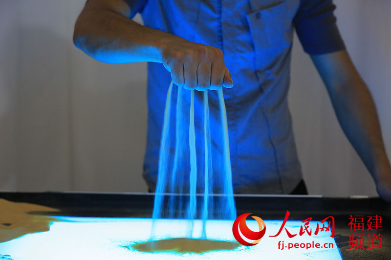 Xiao Gang performs sand paintings. (Photo/people.cn)