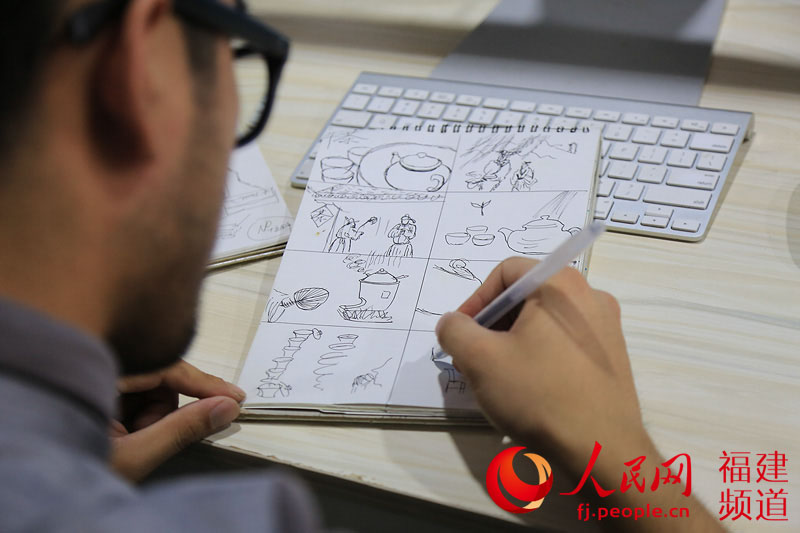 Xiao Gang draws the theme picture on paper. (Photo/people.cn)