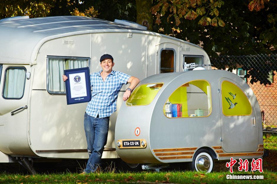 Londoner Yannick Read made his niche in the Guinness World Records 2015 book by building the world’s smallest caravan. The vehicle, which is fully roadworthy, measures 2.39m in length, 1.53m high and 0.79m wide. (Photo: Xinhuanet photo/Chinanews.com)