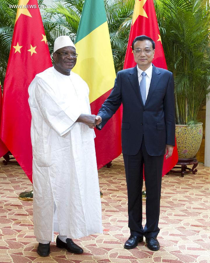 Chinese Premier Li Keqiang (R) meets with Malian President Ibrahim Boubacar Keita on the sidelines of the 2014 New Leaders Meeting of the World Economic Forum, or the Summer Davos, in Tianjin, north China, Sept. 10, 2014. (Xinhua/Wang Ye)