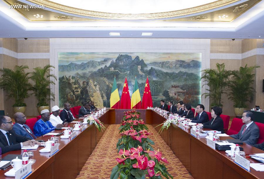 | Chinese Premier Li Keqiang (3rd R) meets with Malian President Ibrahim Boubacar Keita (4th L) on the sidelines of the 2014 New Leaders Meeting of the World Economic Forum, or the Summer Davos, in Tianjin, north China, Sept. 10, 2014. (Xinhua/Wang Ye) |