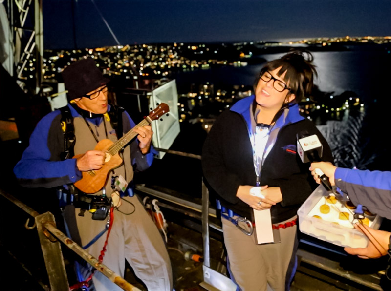 Guided by the Mandarin-speaking Climb leader, the 12 lucky winners of an online competition climbed to the top of the 134-meter-high Sydney Harbor Bridge. The climbers also enjoyed delicious moon cakes and live performance. Players and singers from Australia performed traditional Chinese songs including “the Moon Represents My Heart”.