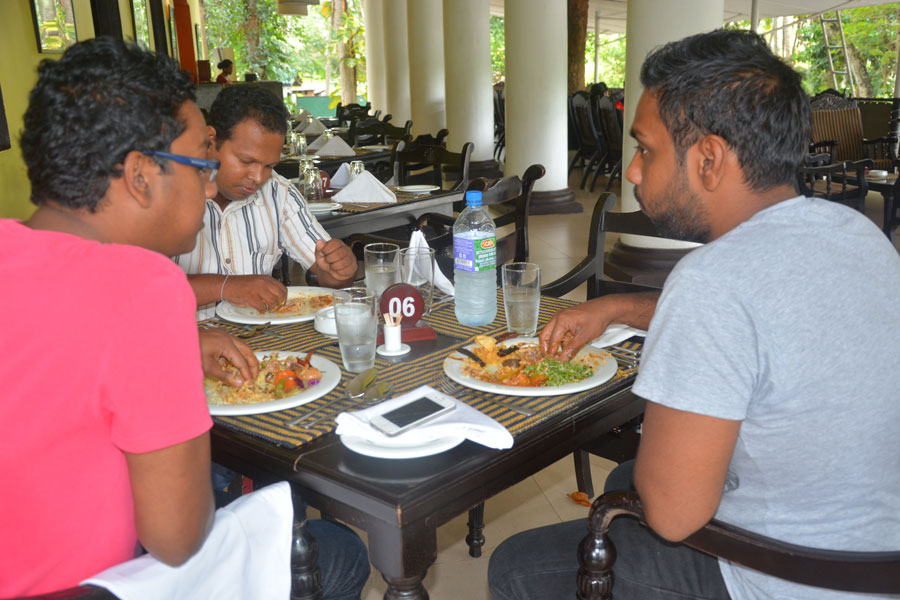 People enjoy the food in Sri Lanka. (People's Daily Online/Yao Chun)