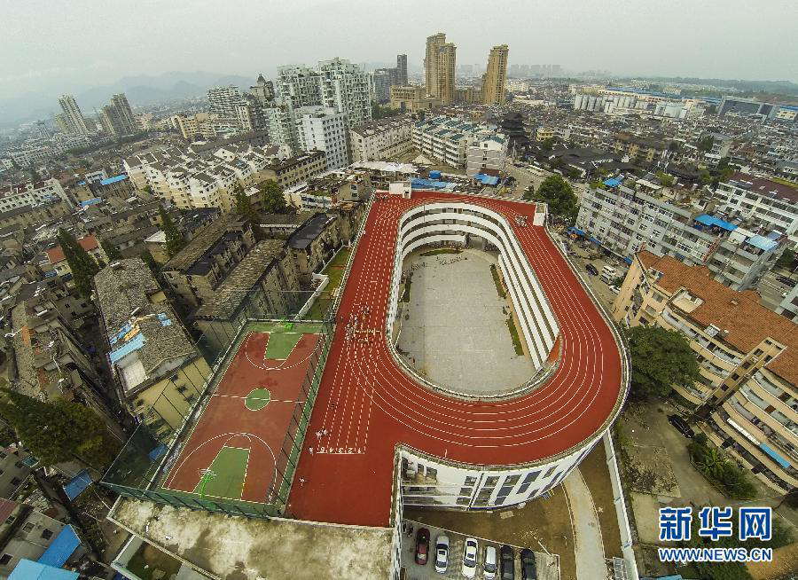 Due to the limited space and high cost of land, many schools in urban centres carry out student activities on the roof. Some primary schools in Hangzhou, southeast China’s province, have vegetable gardens, rest areas, outdoor grounds and running tracks on the roof.
