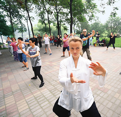 Foreign sinologists learn shadow boxing in Yuan Dynasty City (People’s Daily/Lu Xu)