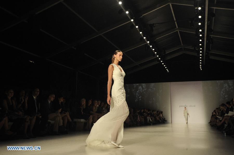 A Model presents a creation of the Spring/Summer 2015 Pamella Roland collection during the New York Fashion Week in New York, the United States, on Sept. 9, 2014. (Xinhua/Wang Lei)