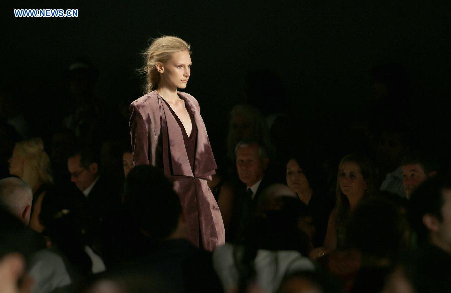 A model presents a creation of the Spring/Summer 2015 SUPIMA collection during the New York Fashion Week in New York, the United States, Sept. 4, 2014. The Mercedes-Benz Fashion Week Spring 2015 opened here on Thursday. (Xinhua/Qin Lang)