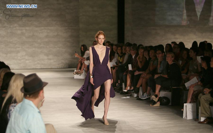 A model presents a creation of the Spring/Summer 2015 SUPIMA collection during the New York Fashion Week in New York, the United States, Sept. 4, 2014. The Mercedes-Benz Fashion Week Spring 2015 opened here on Thursday. (Xinhua/Qin Lang)