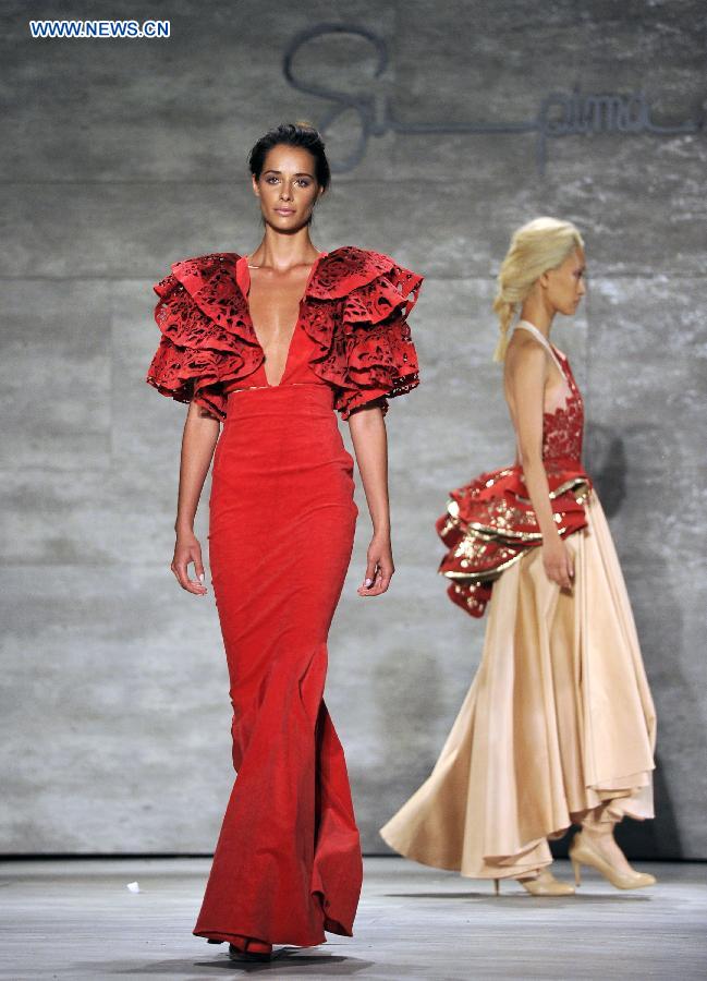 Models present creations of the Spring/Summer 2015 SUPIMA collection during the New York Fashion Week in New York, the United States, Sept. 4, 2014. (Xinhua/Wang Lei)