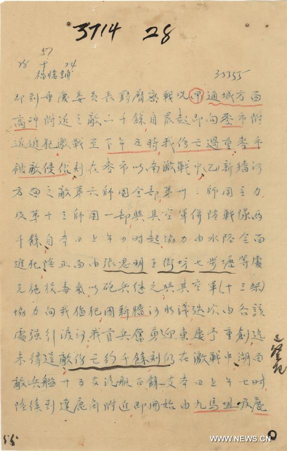 China on Thursday released archives of an important battle against the Japanese army in 1939 which engaged more than 100,000 Japanese soldiers and 240,000 Chinese. (Xinhua)