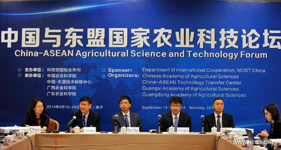 | Delegates attend the China-ASEAN Agricultural Science and Technology Forum in Nanning, capital of south China's Guangxi Zhuang Autonomous Region, Sept. 15, 2014. (Xinhua/Liu Jun) |