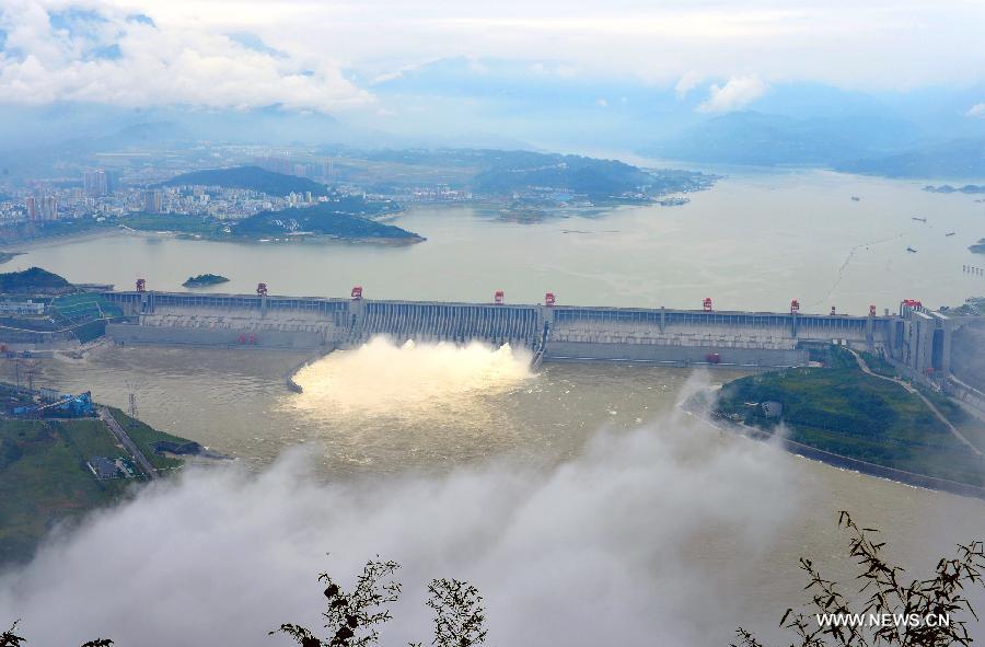 Photo taken on Sept. 15, 2014 shows the Three Gorges Dam, a gigantic hydropower project on the Yangtze River, in Yichang City, central China's Hubei Province. The dam started a new round of experimental impoundment on Monday morning, where the water level is expected to reach 175 meters by the end of October or November. (Xinhua/Zheng Jiayu)