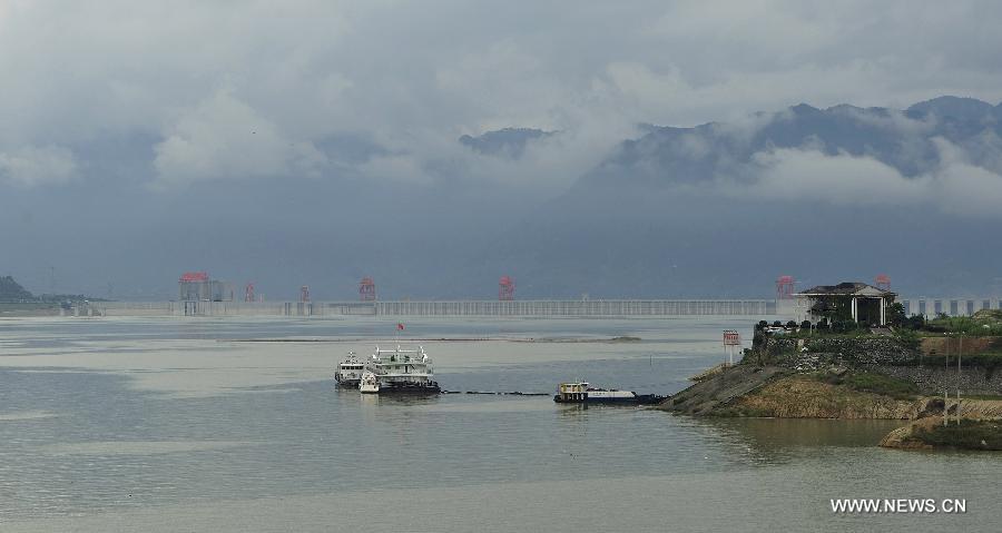 Photo taken on Sept. 15, 2014 shows the Three Gorges Dam, a gigantic hydropower project on the Yangtze River, in Yichang City, central China's Hubei Province. The dam started a new round of experimental impoundment on Monday morning, where the water level is expected to reach 175 meters by the end of October or November. (Xinhua/Wang Jiaman)