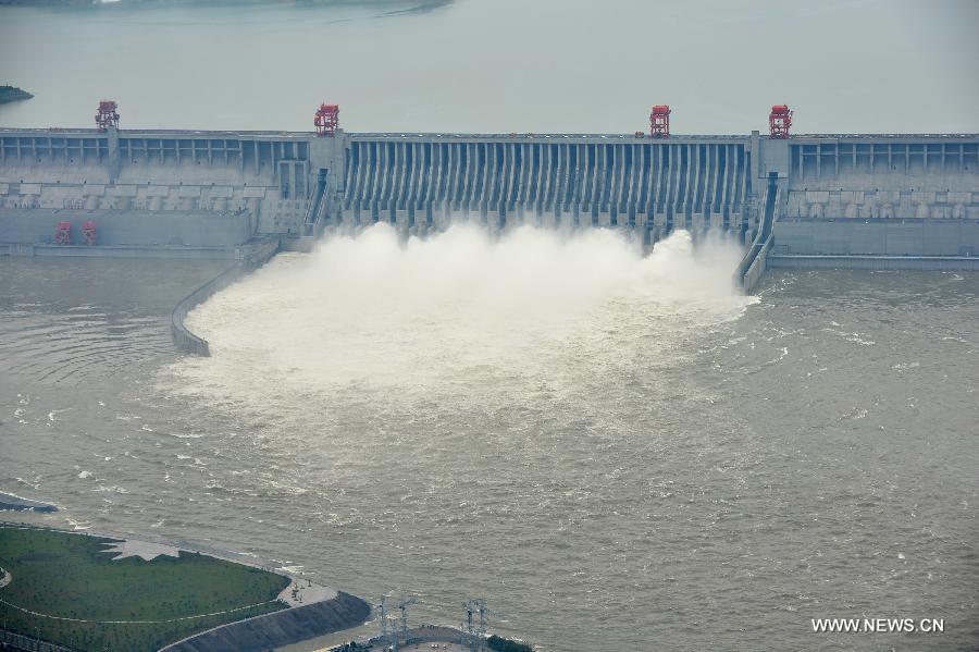Photo taken on Sept. 15, 2014 shows the Three Gorges Dam, a gigantic hydropower project on the Yangtze River, in Yichang City, central China's Hubei Province. The dam started a new round of experimental impoundment on Monday morning, where the water level is expected to reach 175 meters by the end of October or November. (Xinhua/Zheng Jiayu)