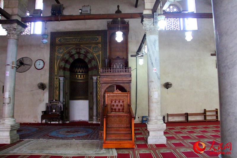 Photo taken on Sept. 14, 2014 shows interior view of the mosque in the city of Cairo, capital of Egypt. The team reporting the "New Silk Road" from People's Daily Online arrived in the city of Cairo on the day. (Photo/People's Daily Online)