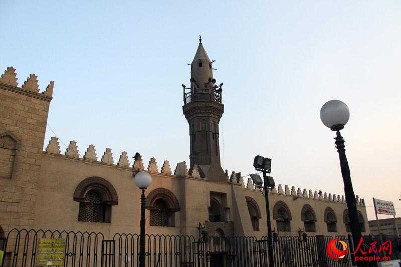 Photo taken on Sept. 14, 2014 shows exterior view of the mosque in the city of Cairo, capital of Egypt. The team reporting the "New Silk Road" from People's Daily Online arrived in the city of Cairo on the day. (Photo/People's Daily Online)