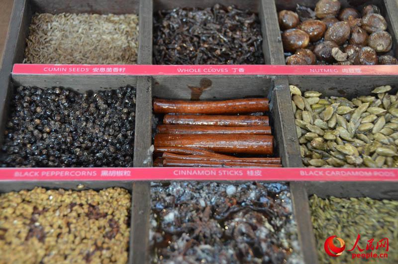 Spices from India are exhibited at the museum. (People's Daily Online/Du Mingming)