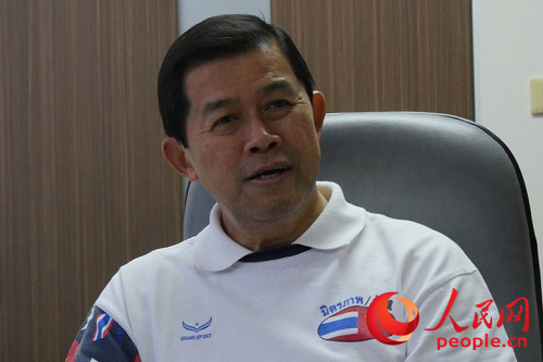Korn Dabbaransi is in an interview with People's Daily Online. (People's Daily Online/Wang Tianle)