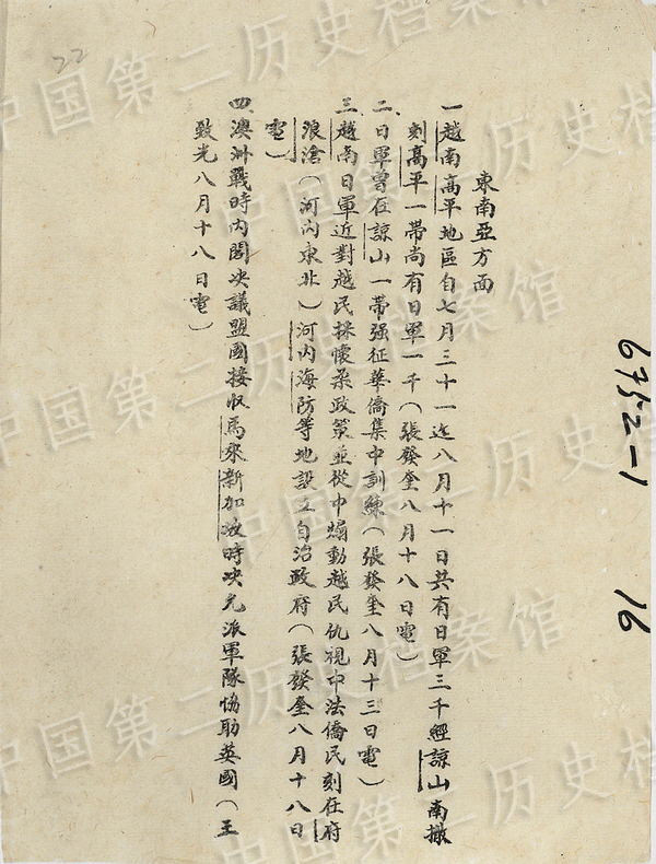 The records on the surrender of Japan in Southeast Asia. (Photo/Second Historical Archives of China)