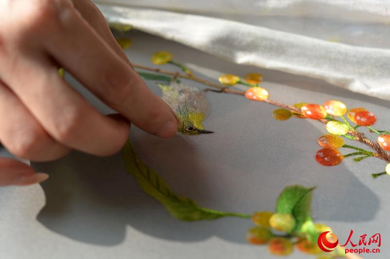 Yao Jianping does both-side embroidery. (People's Daily Online/Weng Qiyu)