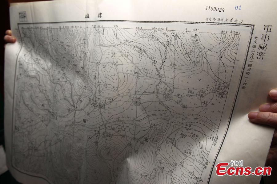 An employee of Administration of Surveying, Mapping and Geoinformation of Central China’s Henan province shows a military map drawn by Japanese army during the Japanese war of aggression against China on Wednesday, September 17, 2014. The detailed topographical map of China is marked with a measuring scale of 1:50,000. The map is exhibited to commemorate the 83rd anniversary of the "9.18 Incident," or "Mukden Incident," which marks the beginning of the 14-year war against Japanese aggression. On September 18, 1931, Japanese troops blew up a section of the railway under their control near Shenyang, and then accused Chinese troops of sabotage as a pretext for attack. They bombarded barracks near Shenyang the same evening, beginning a large-scale armed invasion of northeast China. [Photo: China News Service/ Wang Zhongju]