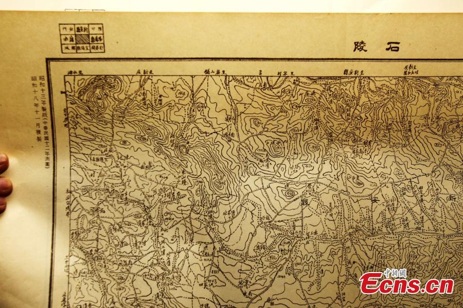 | An employee of Administration of Surveying, Mapping and Geoinformation of Central China’s Henan province shows a military map drawn by Japanese army during the Japanese war of aggression against China on Wednesday, September 17, 2014. The detailed topographical map of China is marked with a measuring scale of 1:50,000. The map is exhibited to commemorate the 83rd anniversary of the "9.18 Incident," or "Mukden Incident," which marks the beginning of the 14-year war against Japanese aggression. On September 18, 1931, Japanese troops blew up a section of the railway under their control near Shenyang, and then accused Chinese troops of sabotage as a pretext for attack. They bombarded barracks near Shenyang the same evening, beginning a large-scale armed invasion of northeast China. [Photo: China News Service/ Wang Zhongju] |